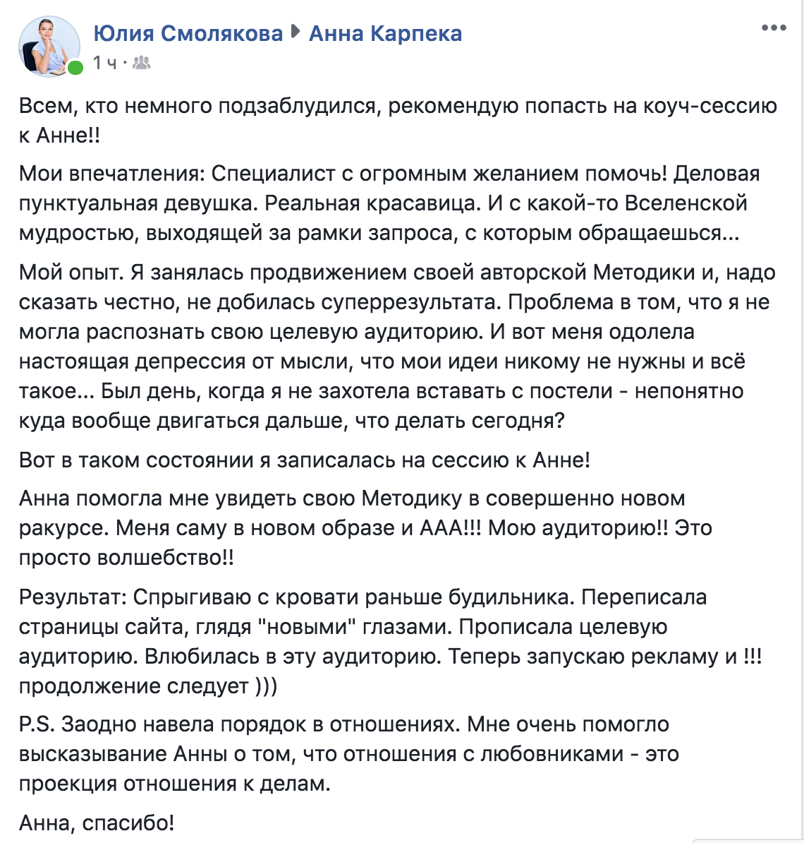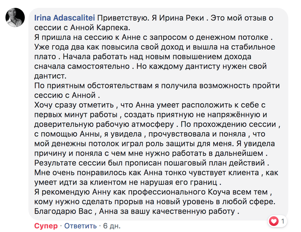 Индивидуальная коуч-консультация с Анной Карпеко
